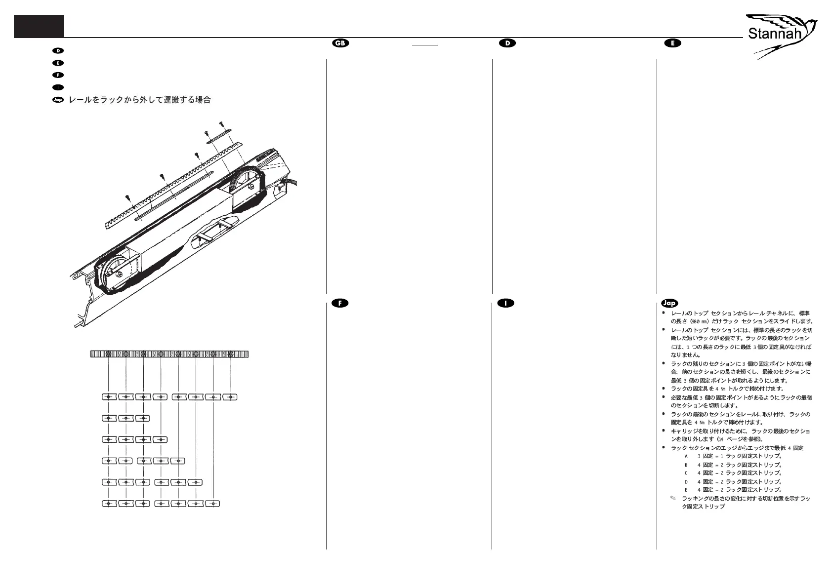 E 4 organi di fissaggio = 2 bande di fissaggio cremagliera.