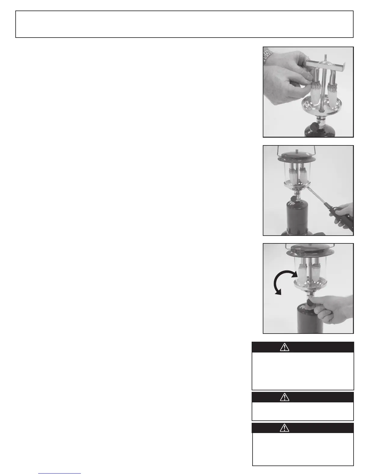 2. SLOWLY open the lantern fuel valve. If your lantern is equipped with a Piezo