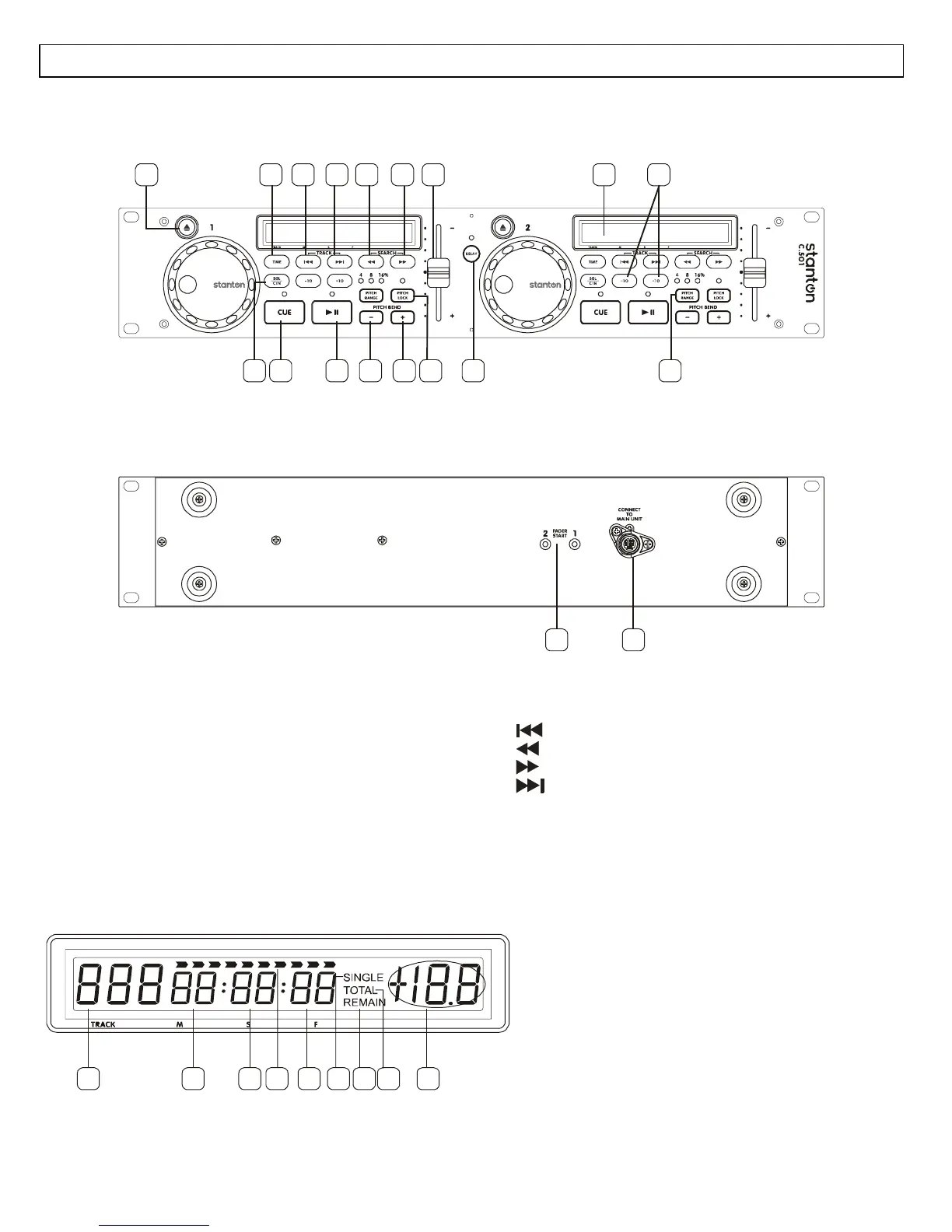 Stanton C.501 - Control Unit and LCD Features; Control Unit Description; LCD Display Indicators