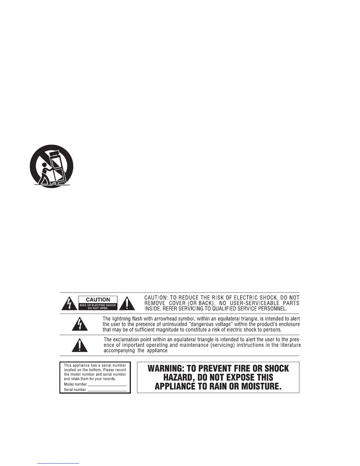 14 Refer all servicing to qualified service personnel. Servicing is required when the apparatus has been damaged in any way, such as