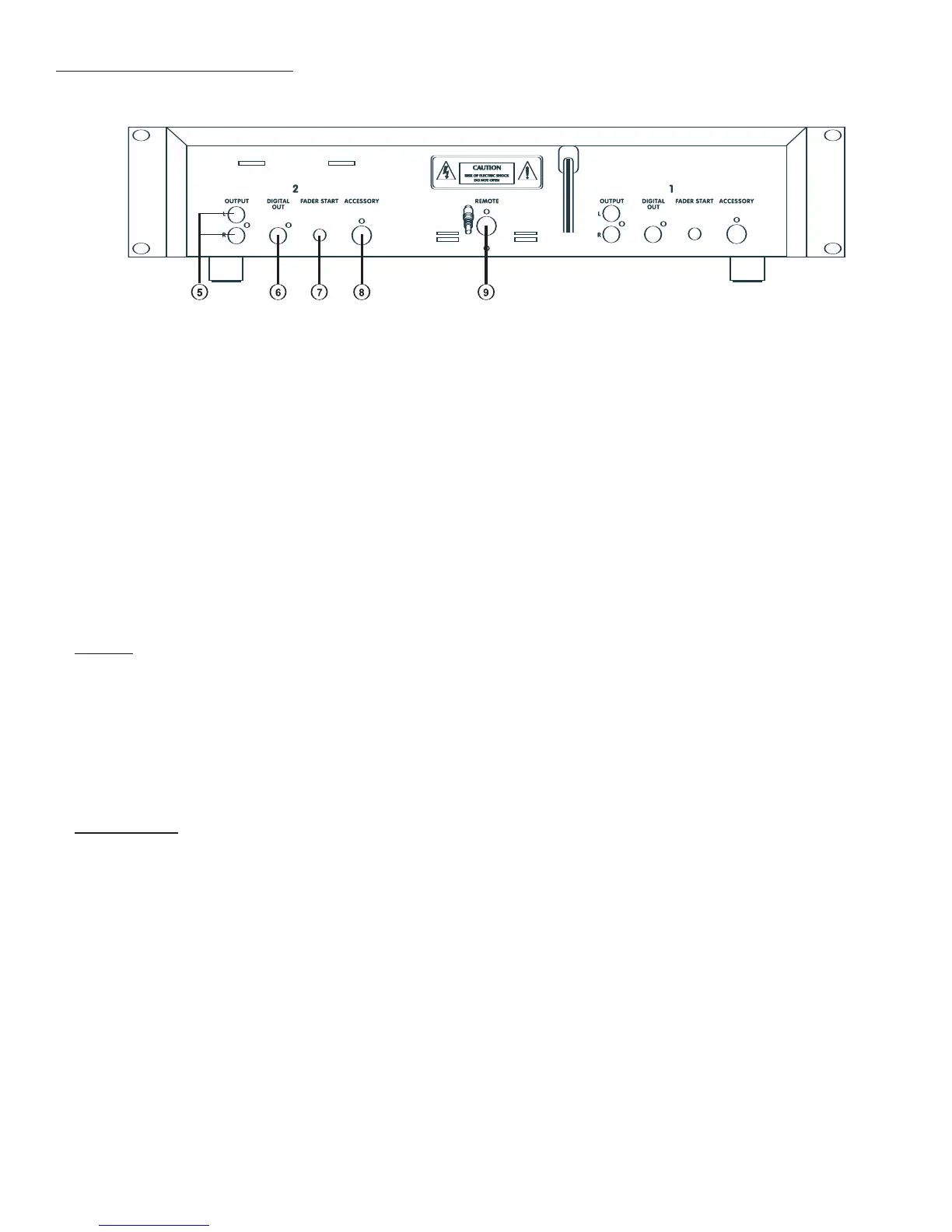 RCA connectors providing line level output signals, one set each for discs 1 and 2.