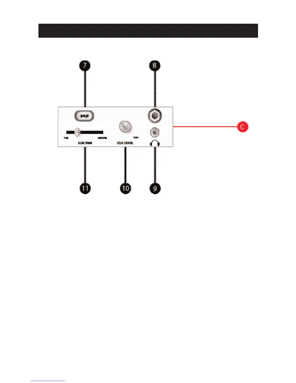 11. Cue Pan: This controls the blend of audio signals that can be heard in the head
