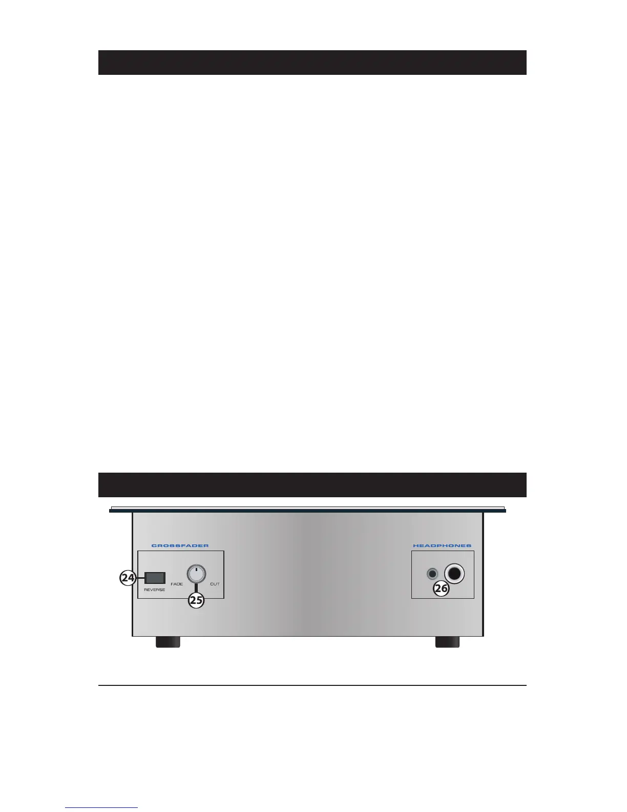 23. Crossfader - The crossfader fades between channel 1 and