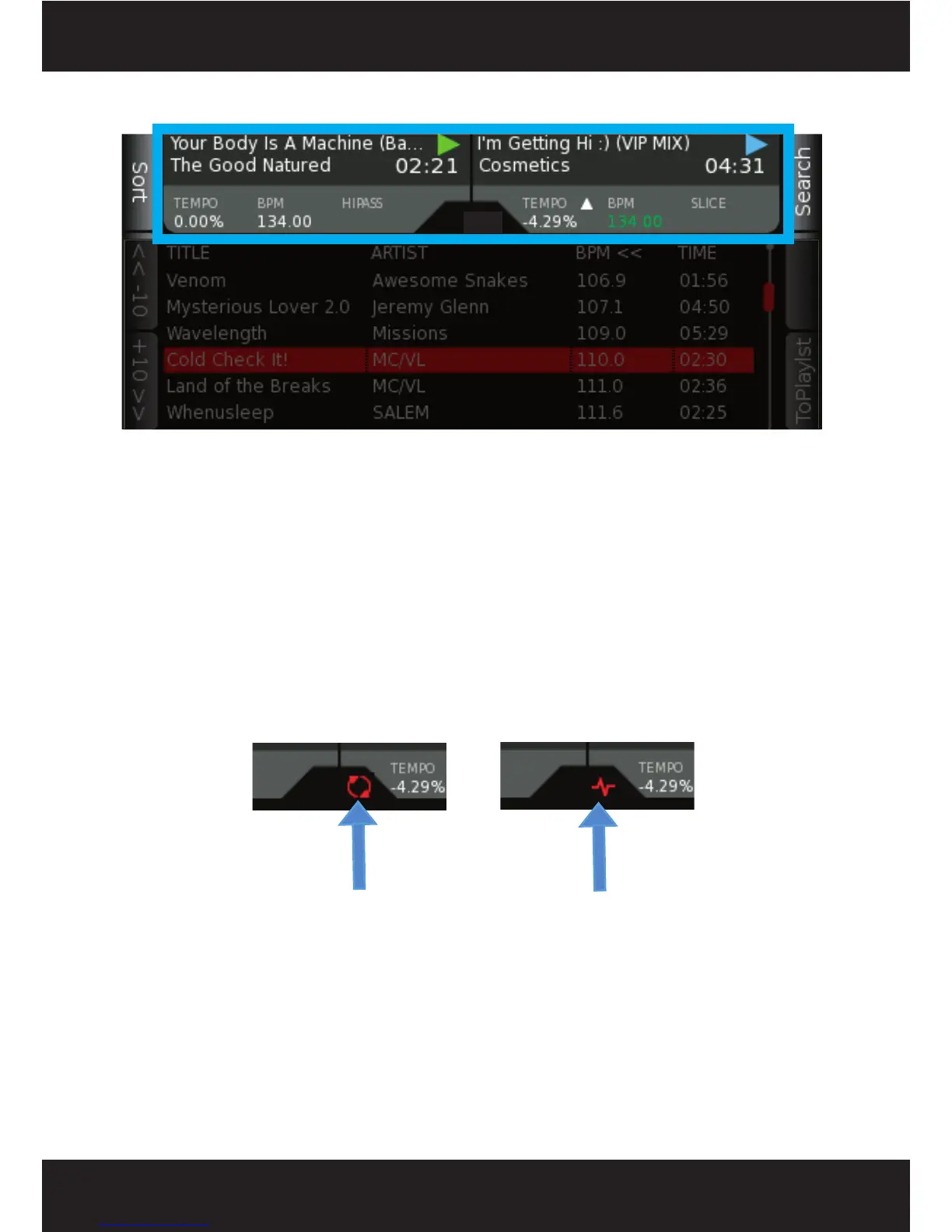 screens on your SCS.4DJ. On each deck, from left to right, the following is displayed: