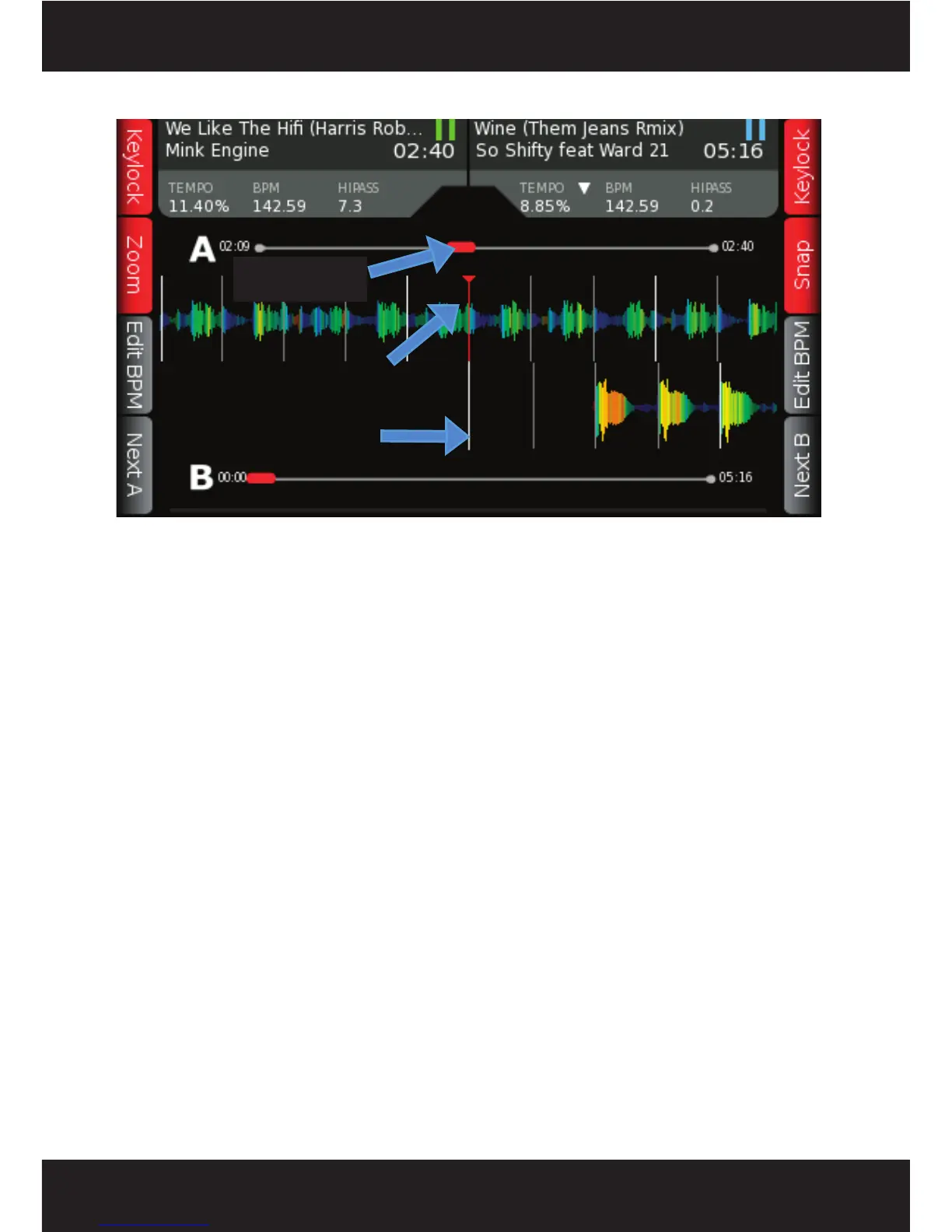 loaded in each deck. The TOP WAVEFORM is for DECK A, the BOTTOM WAVEFORM is for