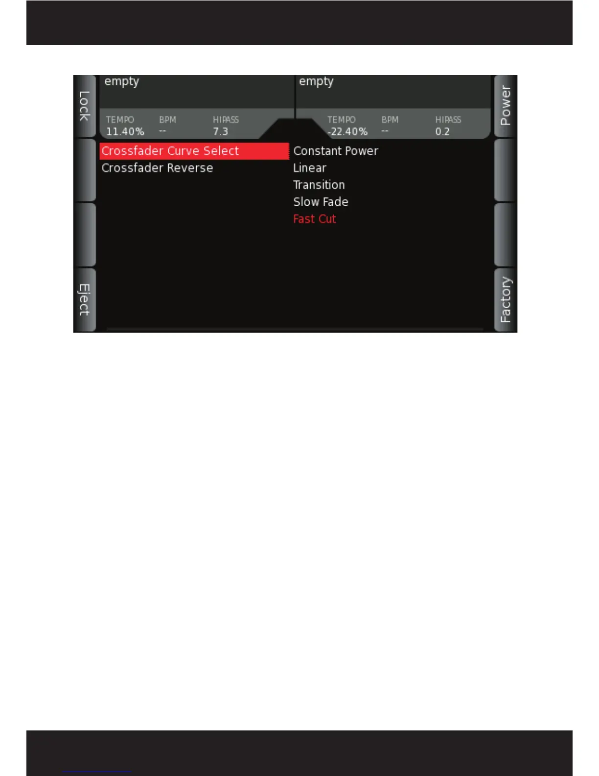 - Fast Cut- Sharp cut, typically used for scratching or to rapidly cut audio on/off