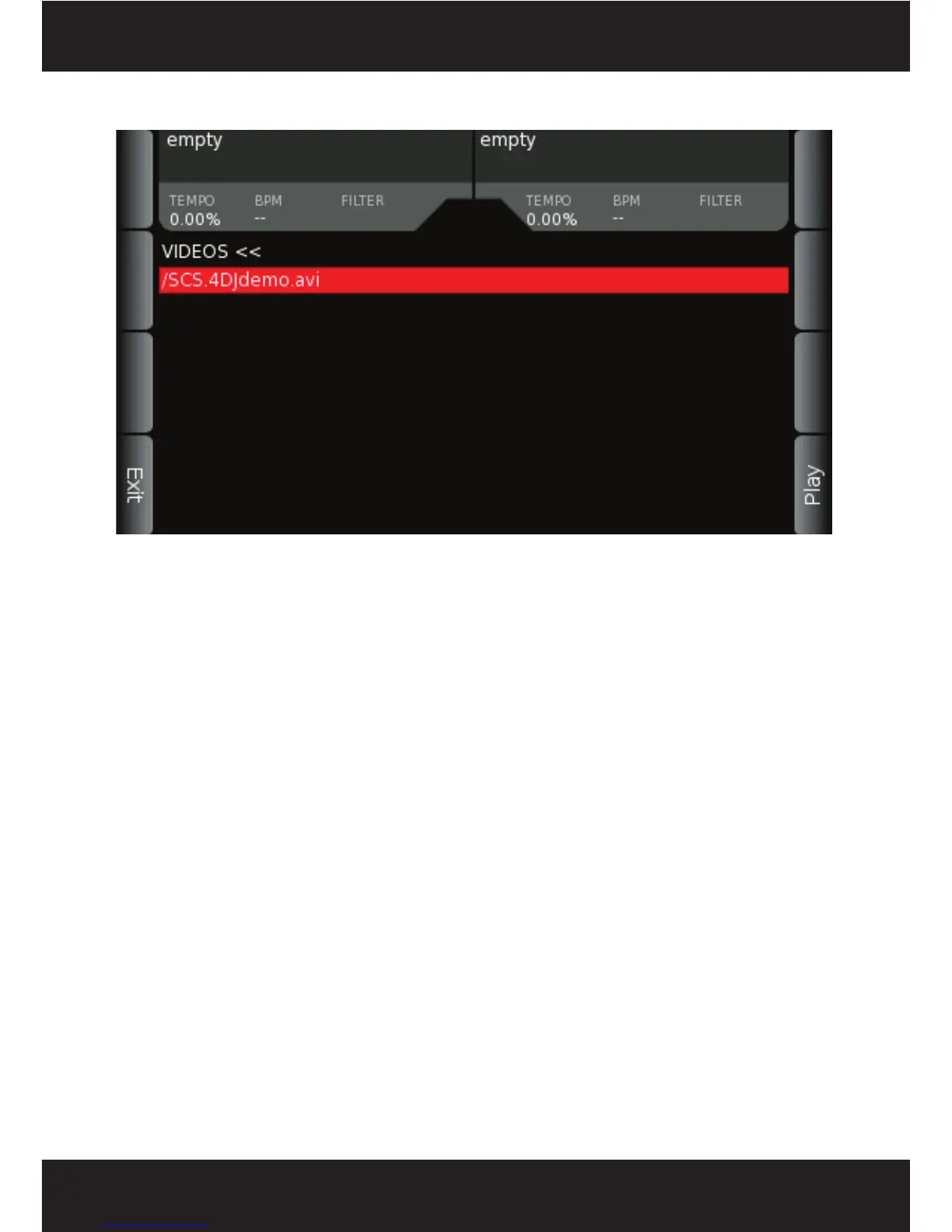 desired video. There are two soft keys available in this display: EXIT and PLAY. Pressing EXIT or