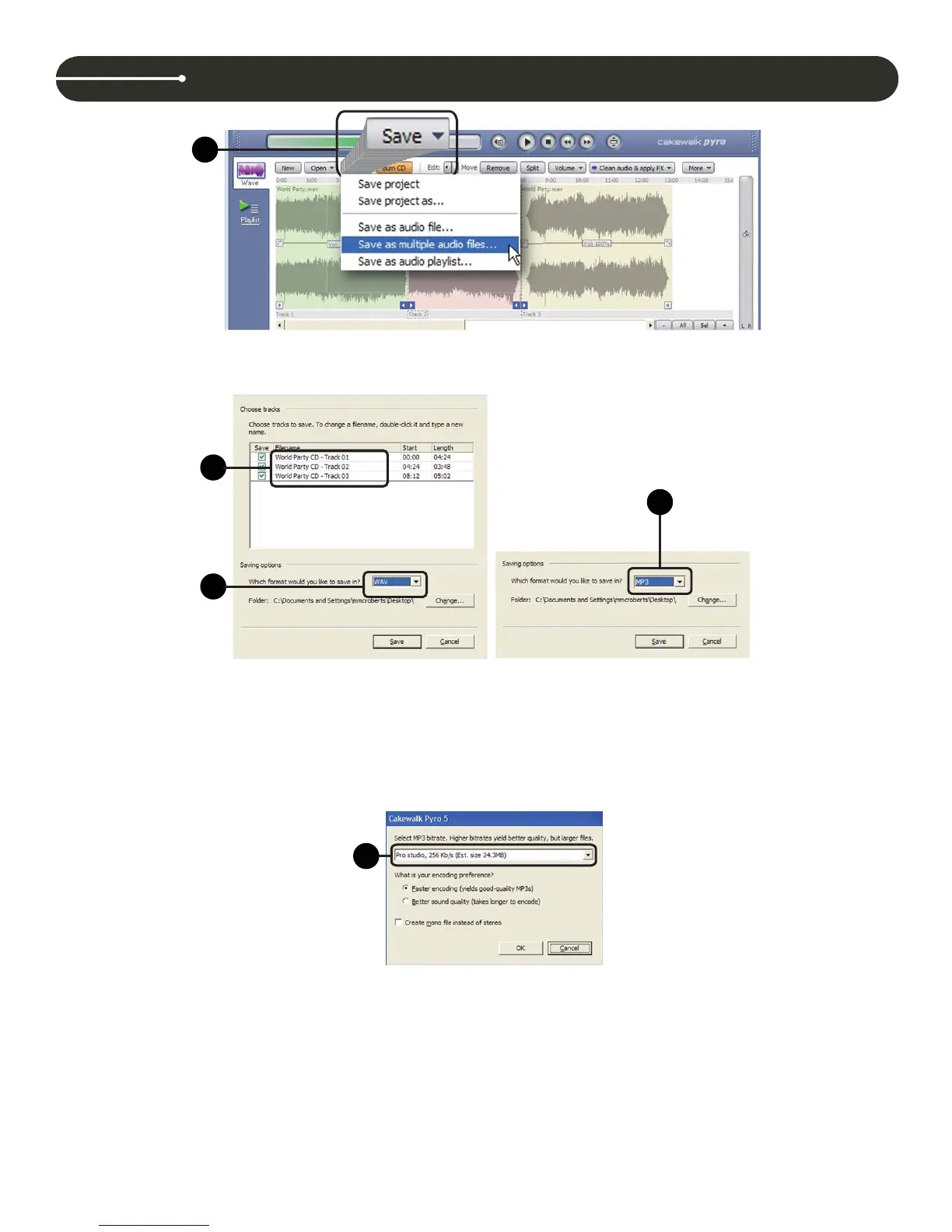 7. This brings up a dialog box offering several choices. The first choice allows you to choose which tracks you want to save. Click on the box to the left