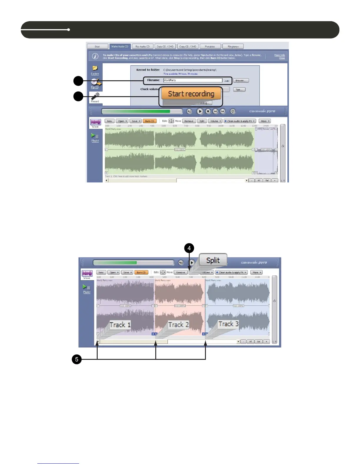 4. If you have recorded an LP side or a continuous selection of LP tracks, you can split them into individual tracks for the CD. At the end of each track, there