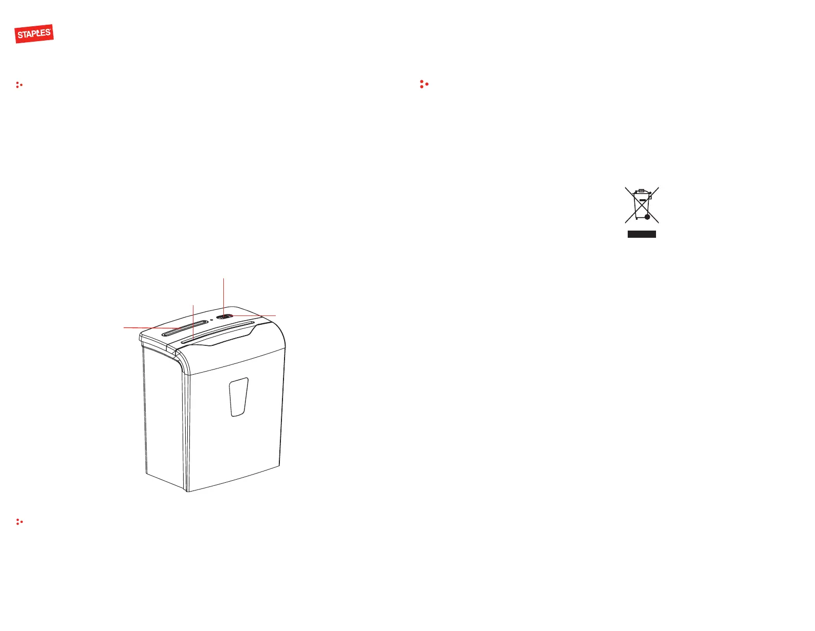 • This shredder is intended for indoor use only.