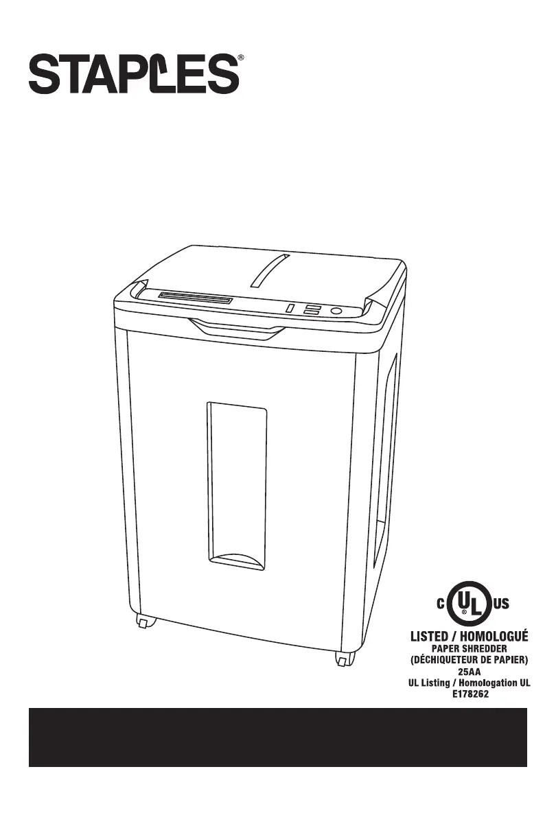 If your Staples Paper Shredder doesn't power up, try the following: - Ensure the power cord is properly plugged into the shredder. - Check that the Power LED is ON. - Clear any paper jam. - Make sure the wastebasket is properly closed. - Check if the shredder has overheated.