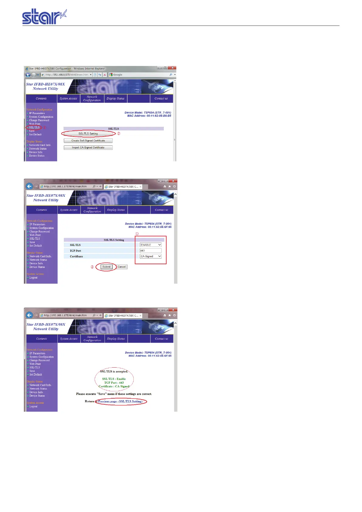 Select[Enable]fromthe"SSL/TLS"drop-downlistand[CA-Signed]fromthe"Certicate"drop-downlist.Click[Submit].