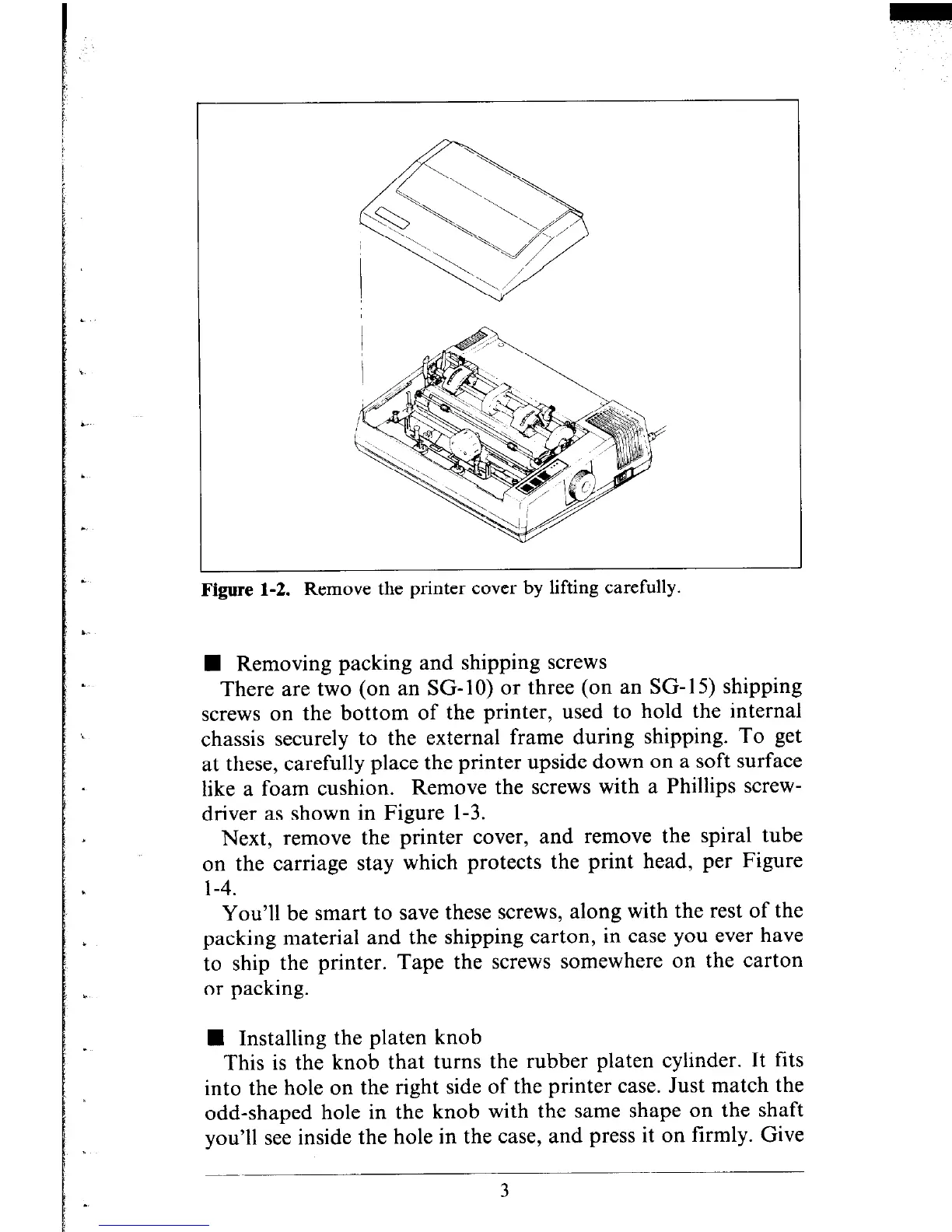 Figure 1-2. Remove the printer cover by lifting carefully.