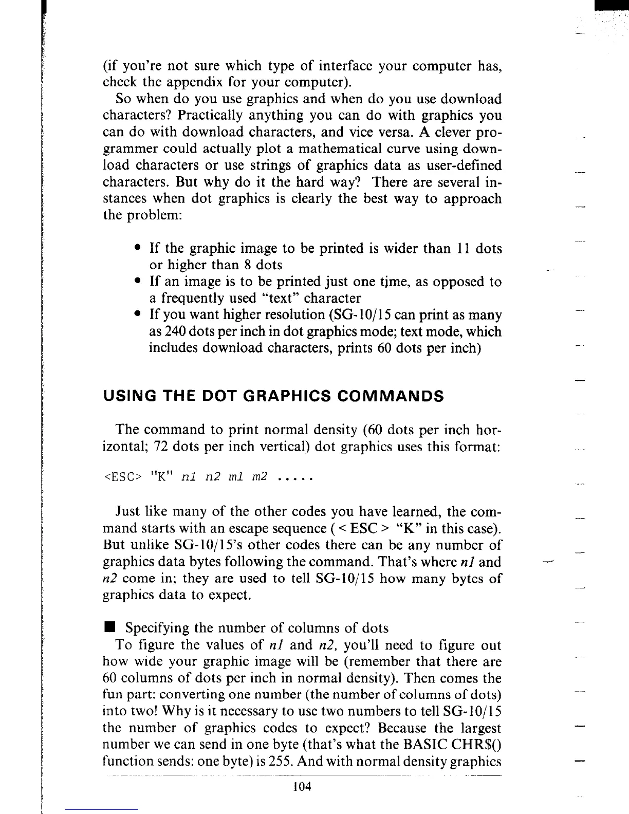 60 columns of dots per inch in normal density). Then comes the
