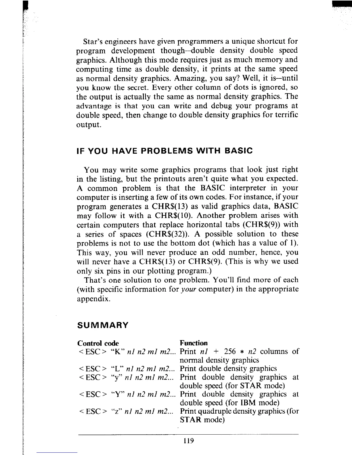 < ESC > “Y” nl n2 ml m2... Print double density graphics at