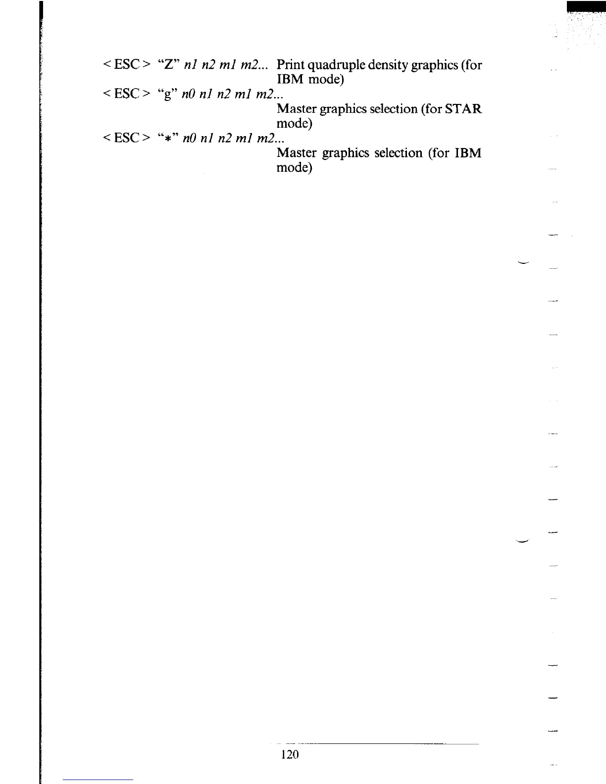 < ESC > “Z” nl n2 ml m2... Print quadruple density graphics (for