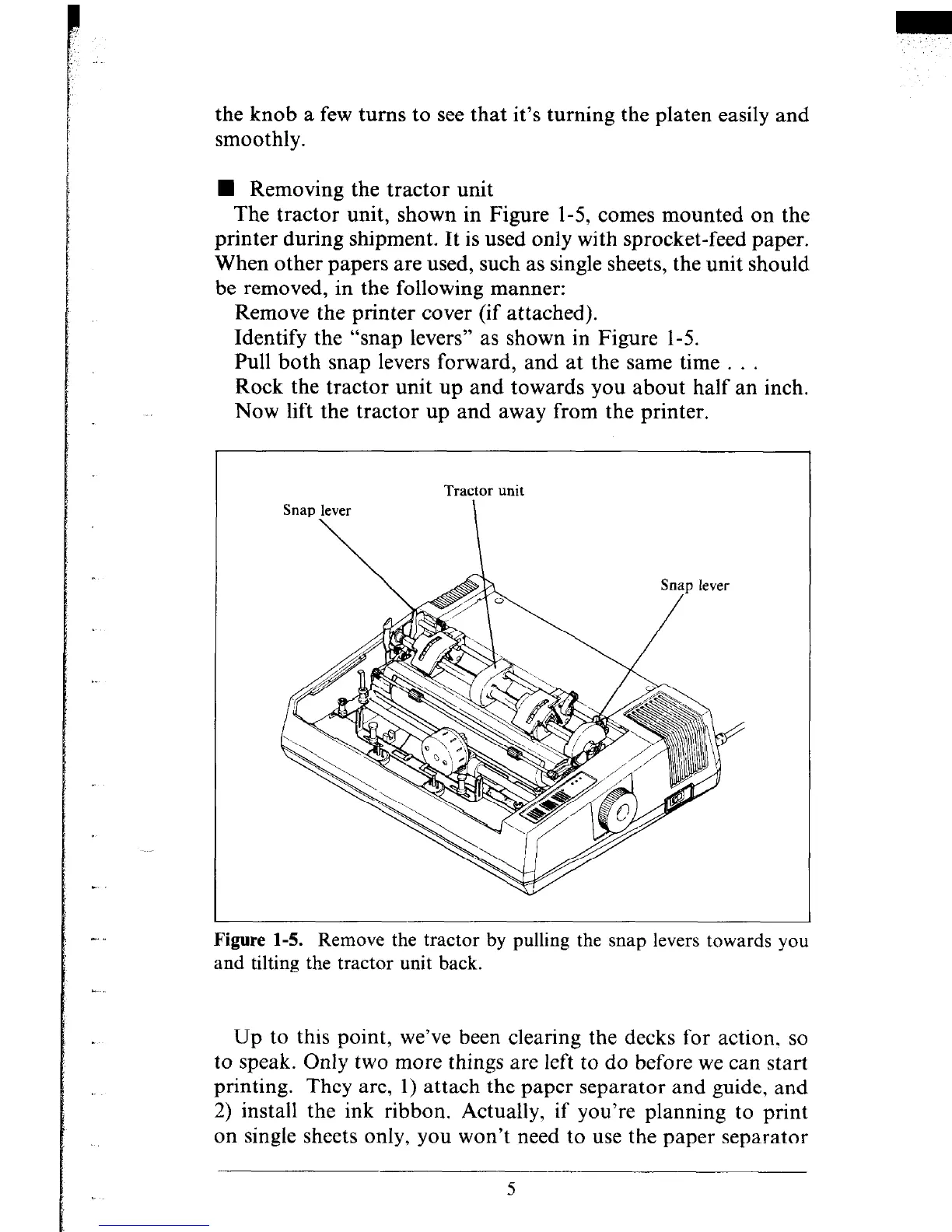 Figure 1-5. Remove the tractor by pulling the snap levers towards you