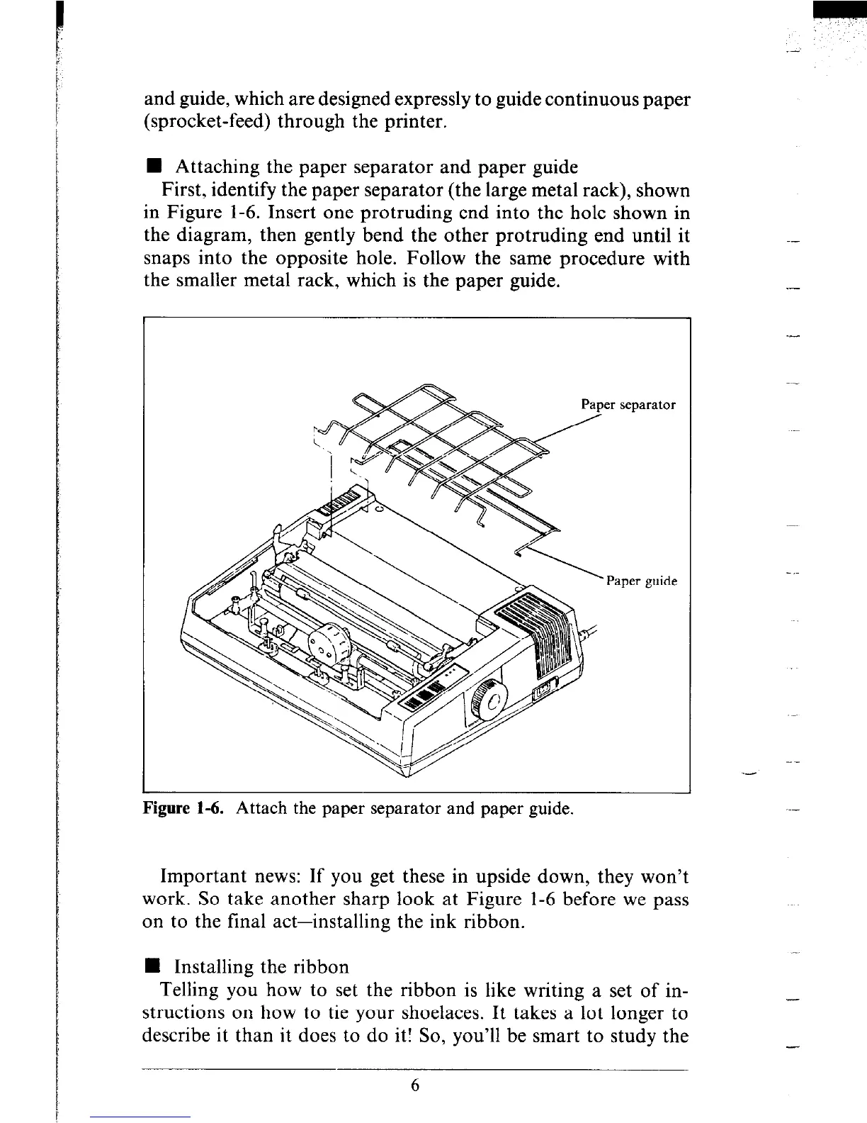 Figure 1-6. Attach the paper separator and paper guide.