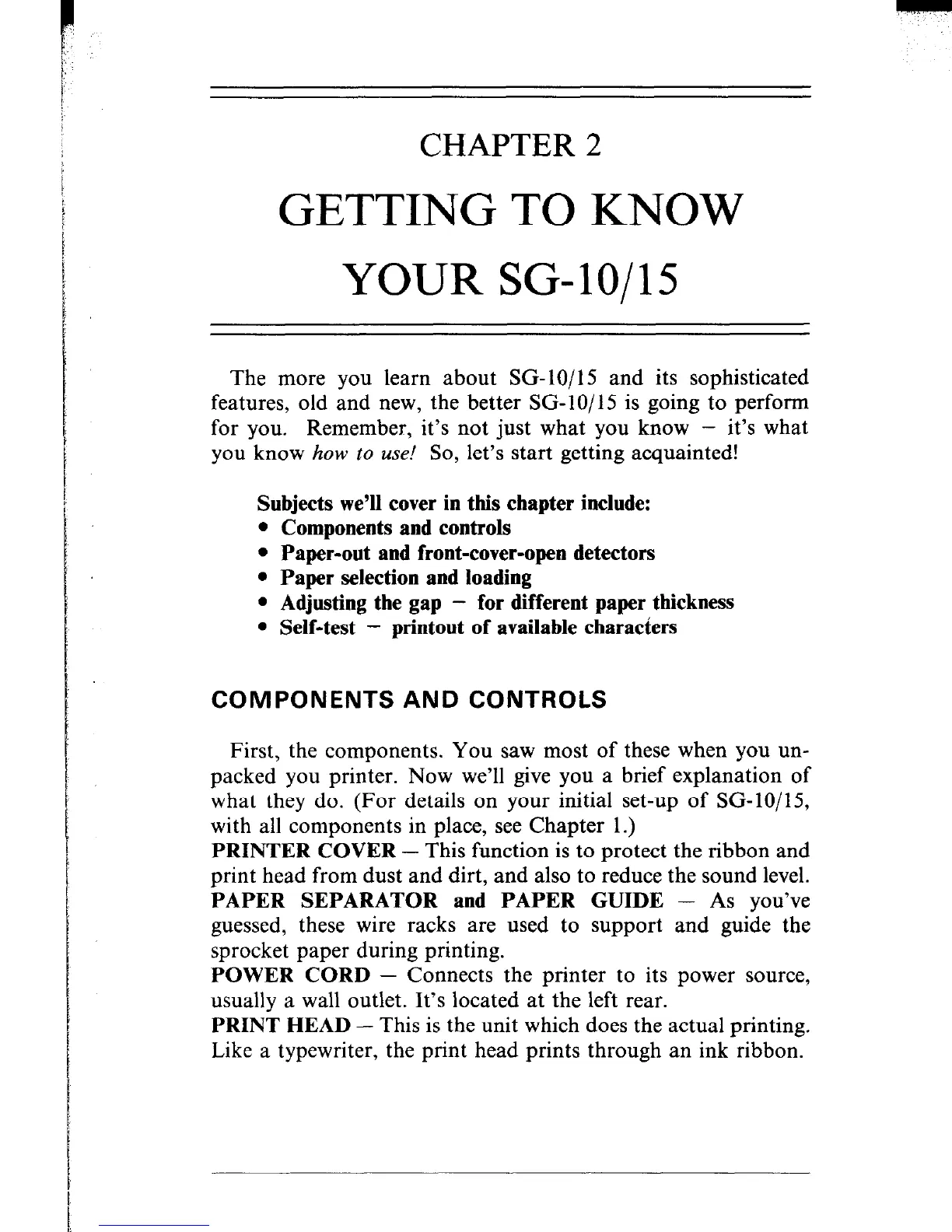 what they do. (For details on your initial set-up of SG-10/15,