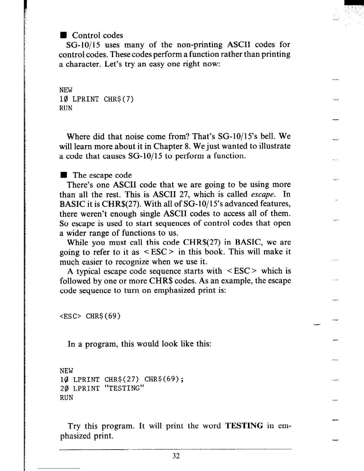 BASIC it is CHR$(27). With all of SG- lO/ 15’s advanced features,