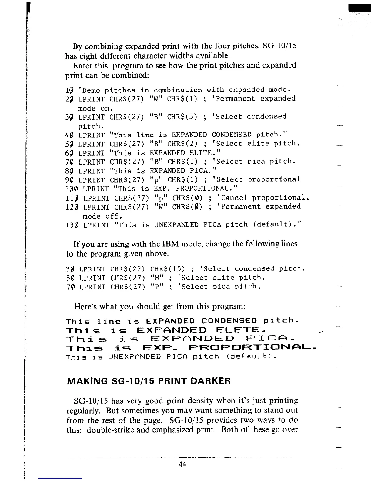 130 LPRINT "This is UNEXPANDED PICA pitch (default)."