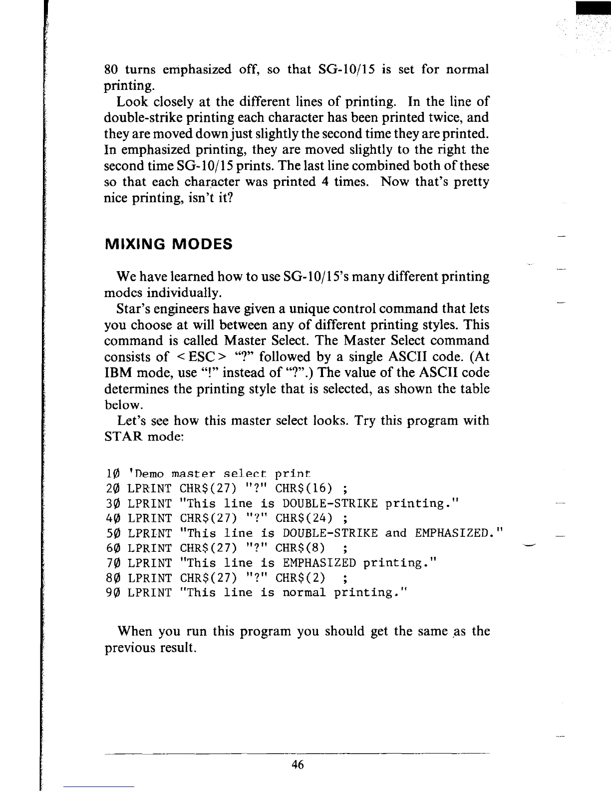 70 LPRINT "This line is EMPHASIZED printing."