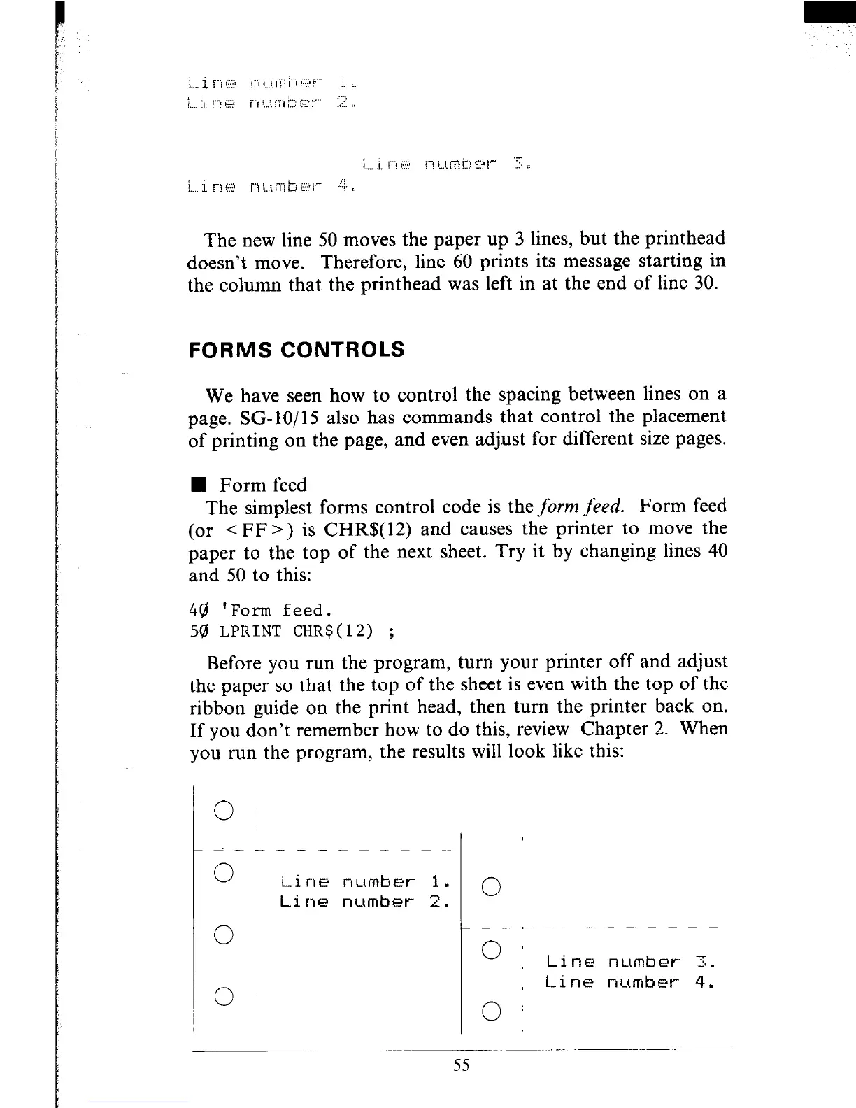 (or < FF > ) is CHR$(12) and causes the printer to move the