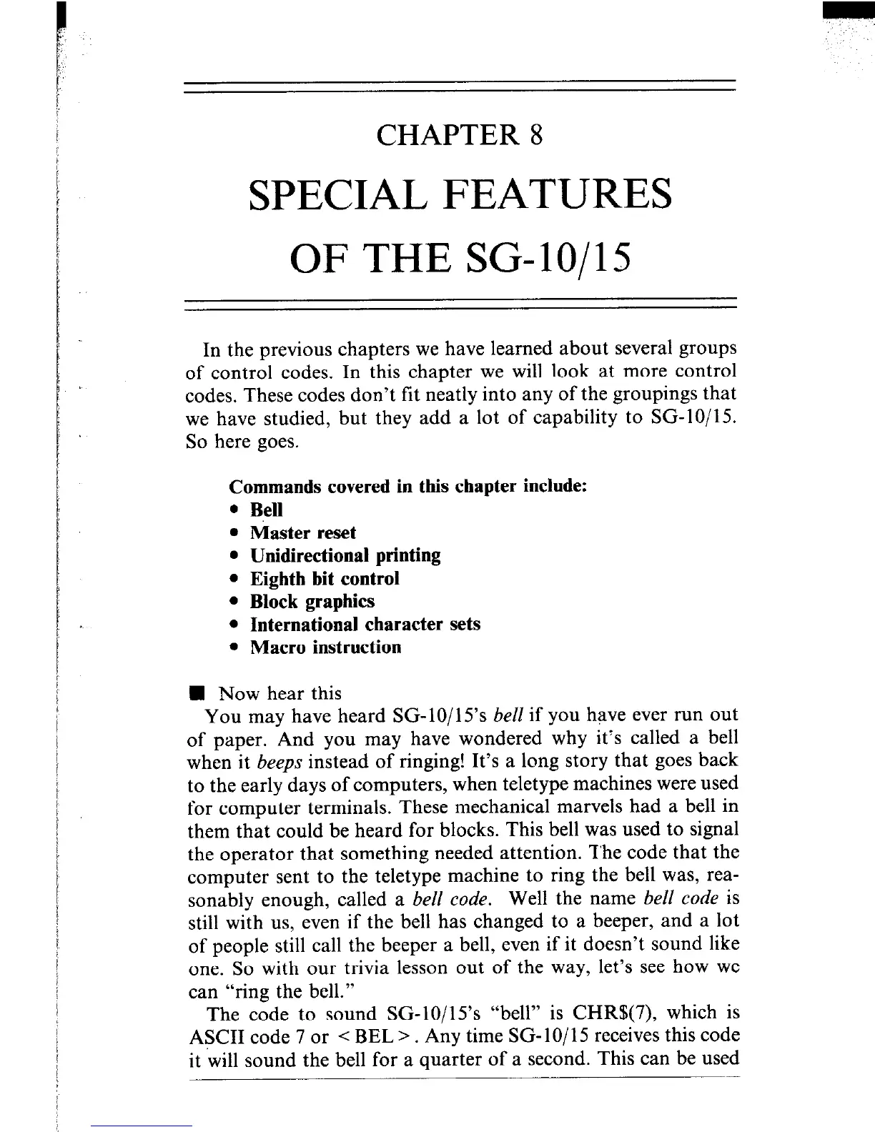 ASCII code 7 or < BEL > . Any time SG- lo/15 receives this code