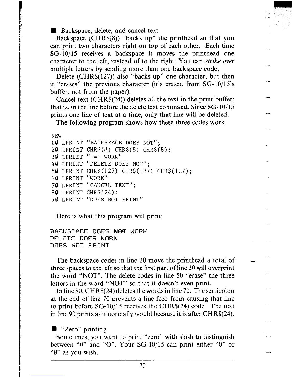 to print before SG-lo/15 receives the CHR$(24) code. The text