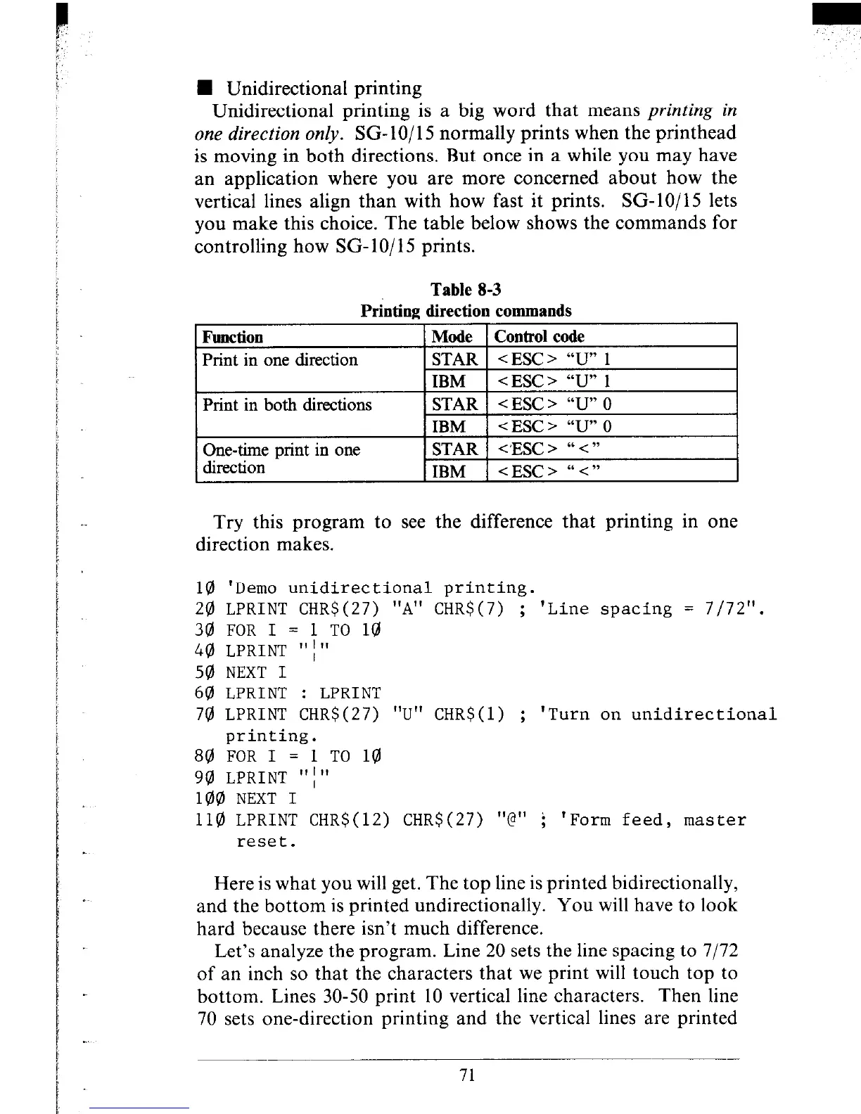 one direction only. SG- lo/ 15 normally prints when the printhead