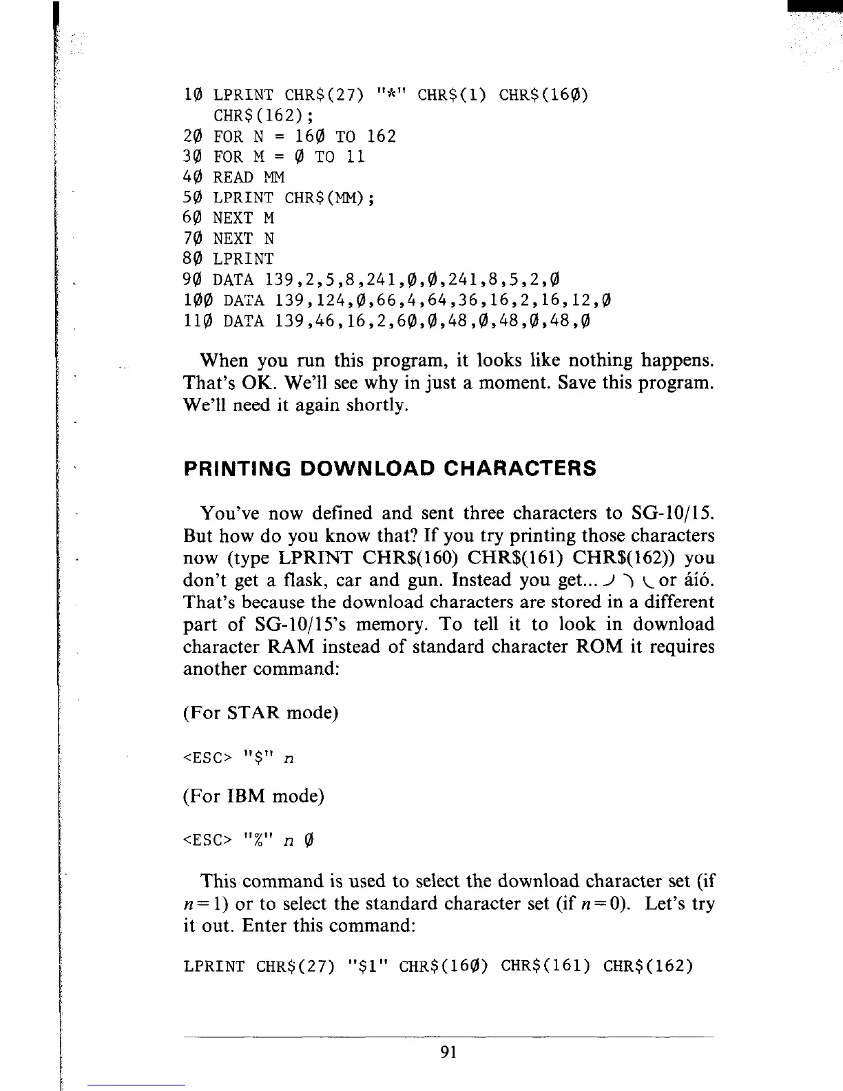 10 LPRINT CHR$(27) "*" CHR$(l) CHR$(160)