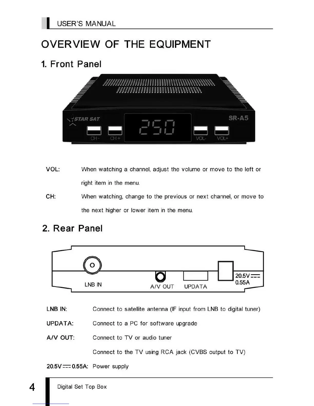 star sat SR-A5 - OVERVIEW OF THE EQUIPMENT; Front Panel; Rear Panel