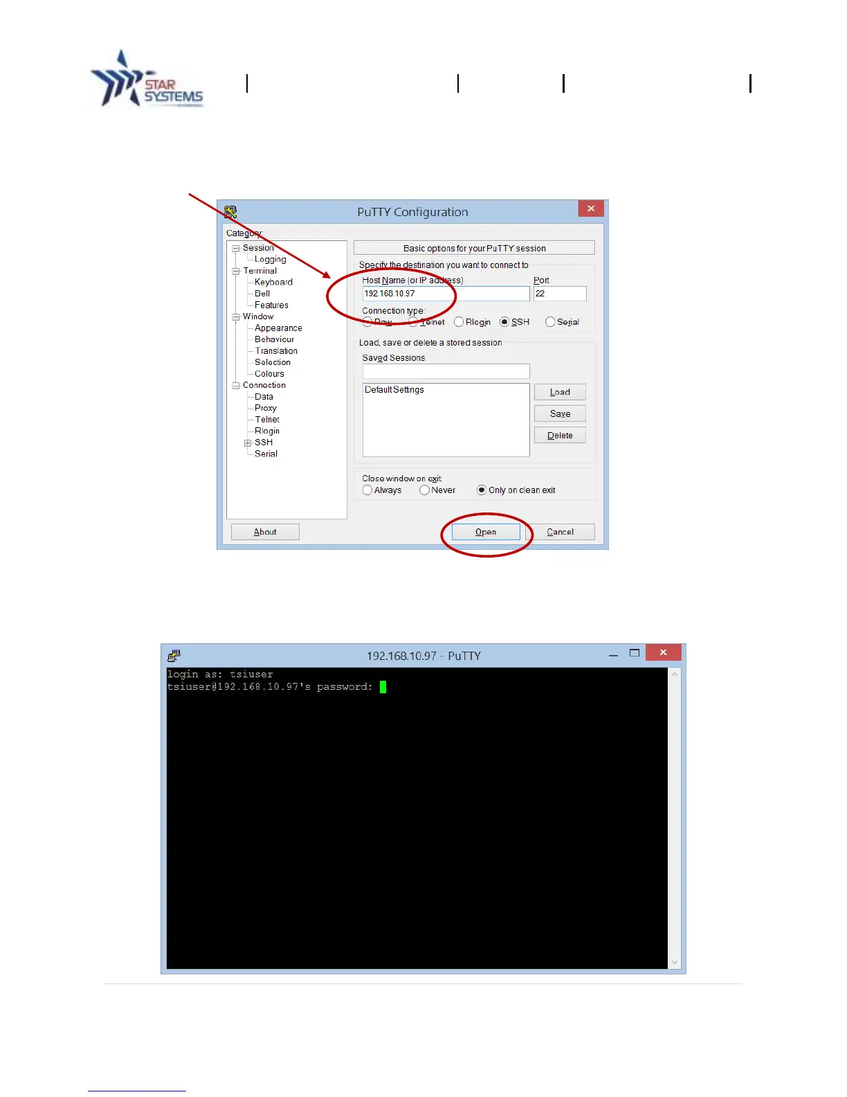 Enter the IP Address in the “Host Name” field in PuTTY: