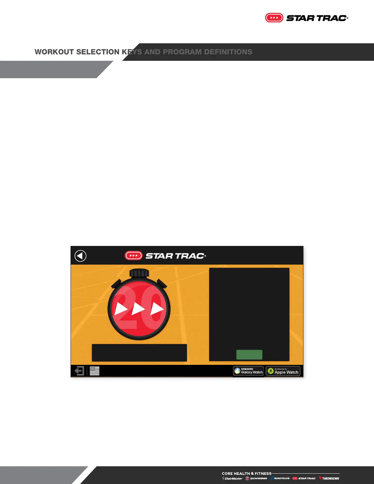 Star Trac 20 A set of 5 different 20 minute High Intensity Interval Training (HIIT) program options, allowing