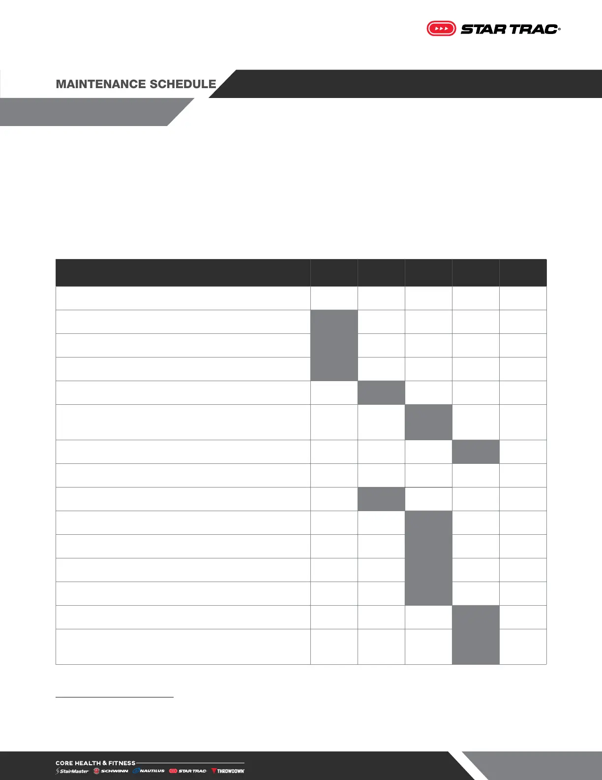 the use and environment of the unit. Basic scheduling is shown below, but timeline and PM schedules should