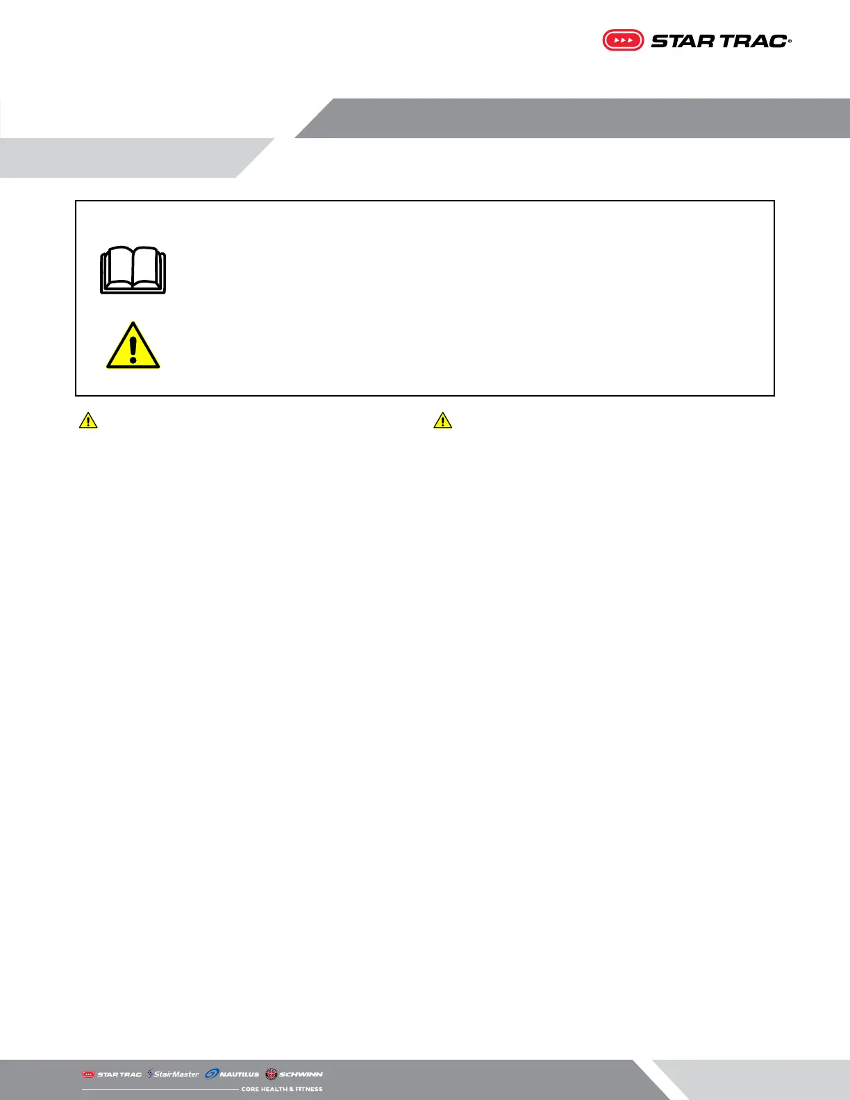 Health related injuries may result from incorrect or excessive use of exercise equipment. STAR TRAC