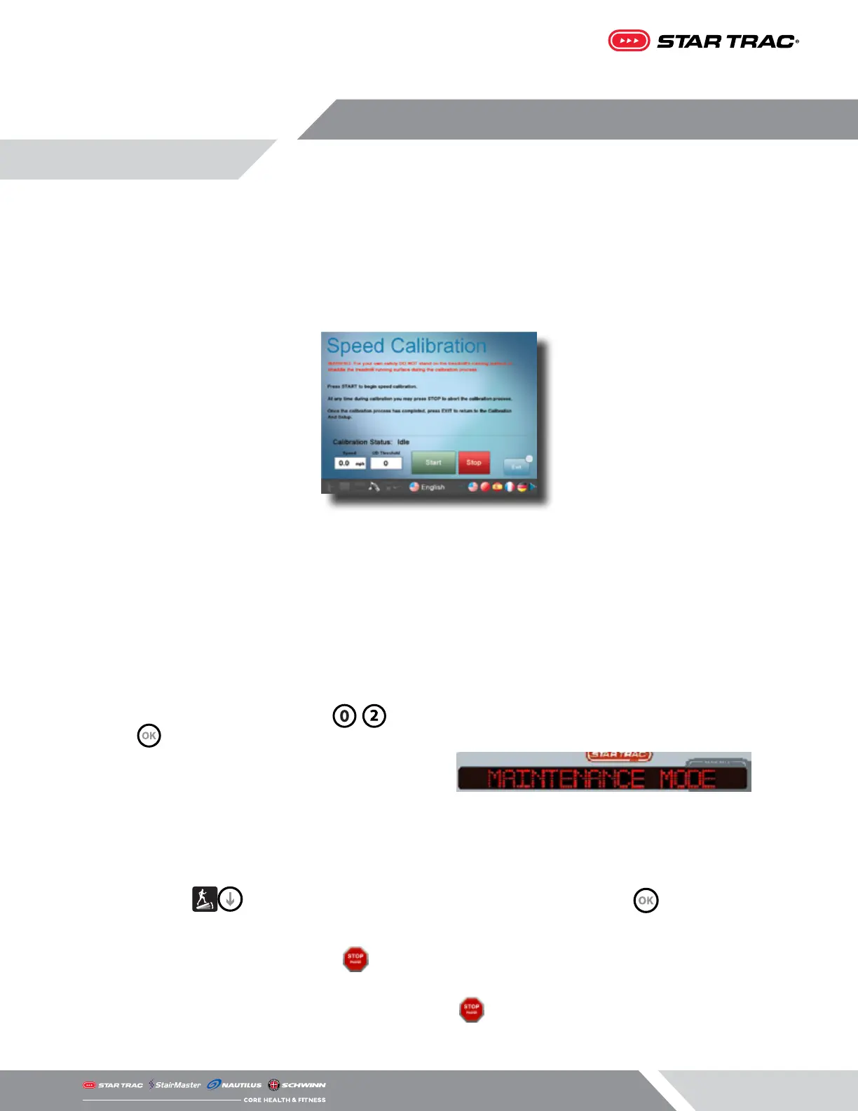 3. Press the until the marquee window reads “SPEED CALIBRATION”, then press . Belt will start to