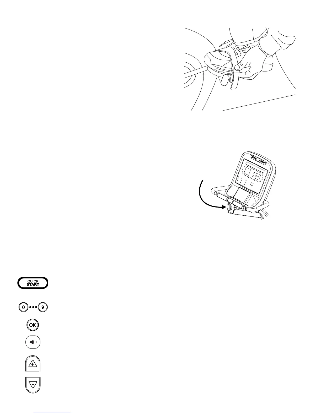 QUICK START Key: Enables the bike for manual operation using a default weight of 155 pounds, a default LEVEL of