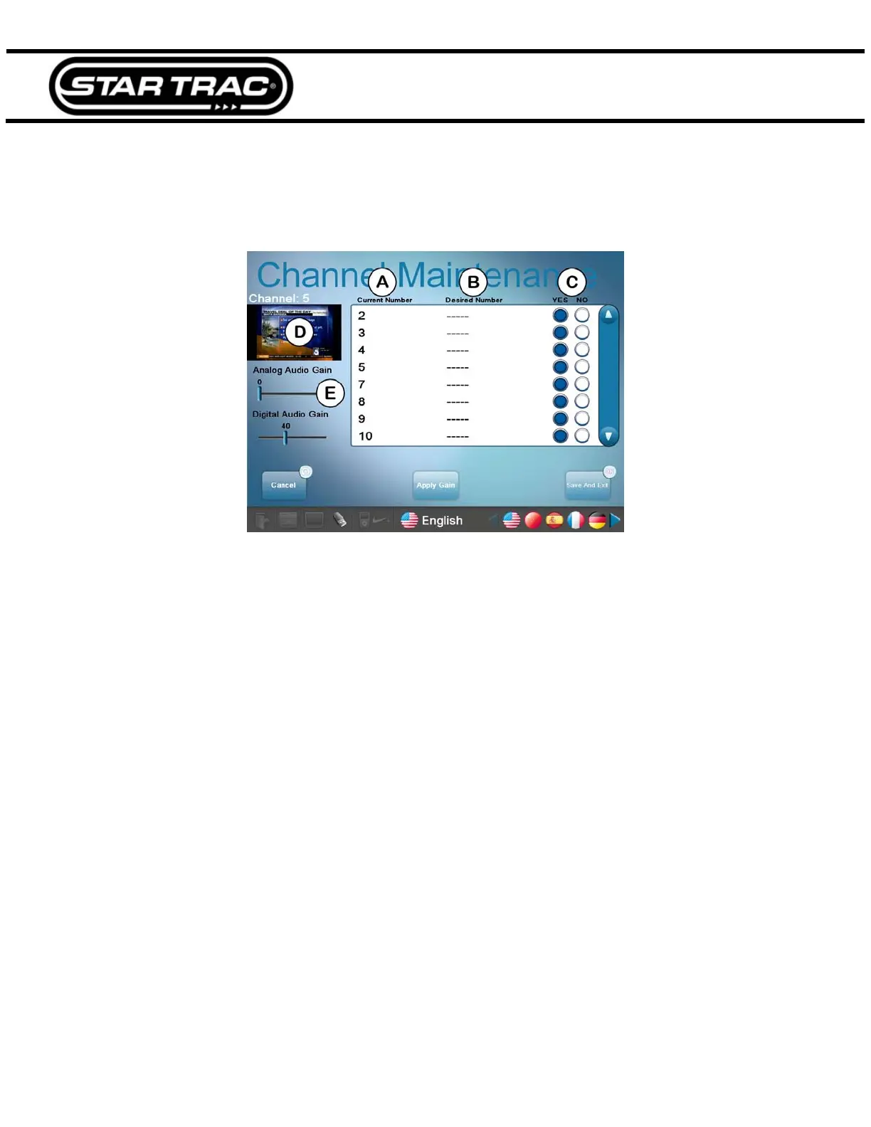 Channel Maintenance allows you to hide channels, re-number channels and adjust audio gain levels.