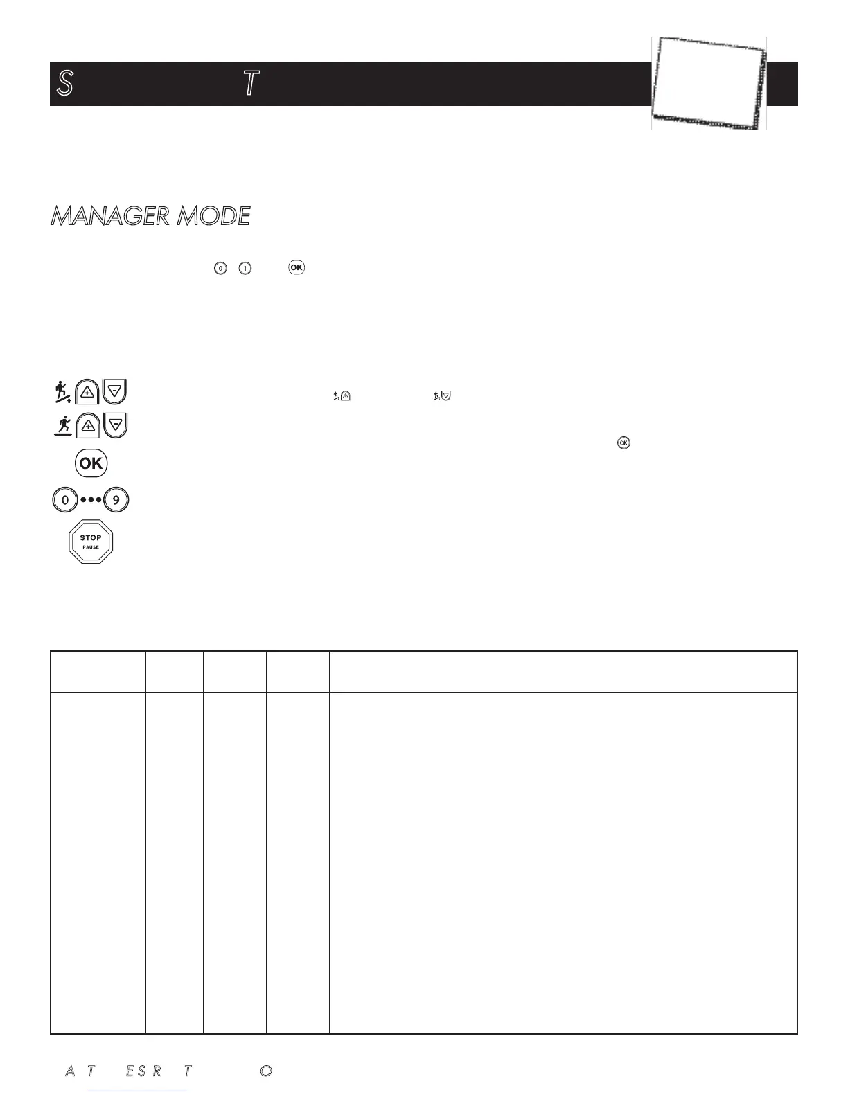 Stop Key: Exits Manager Mode and restarts the treadmill greeting.