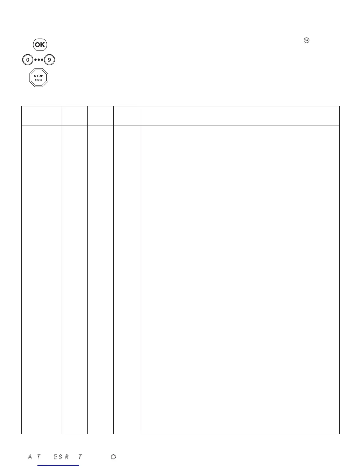 PAUSE 30 45 120 Pause duration during a program, in seconds, either 30, 45, 60, 90 or 120.