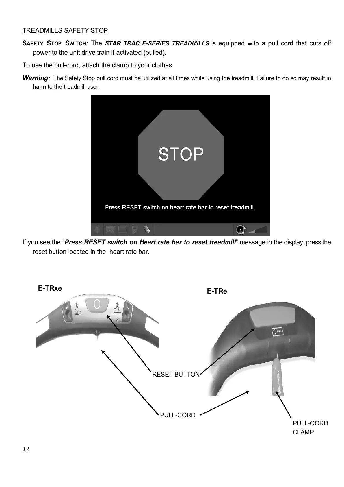 The Safety Stop pull cord must be utilized at all times while using the treadmill. Failure to do so may result in