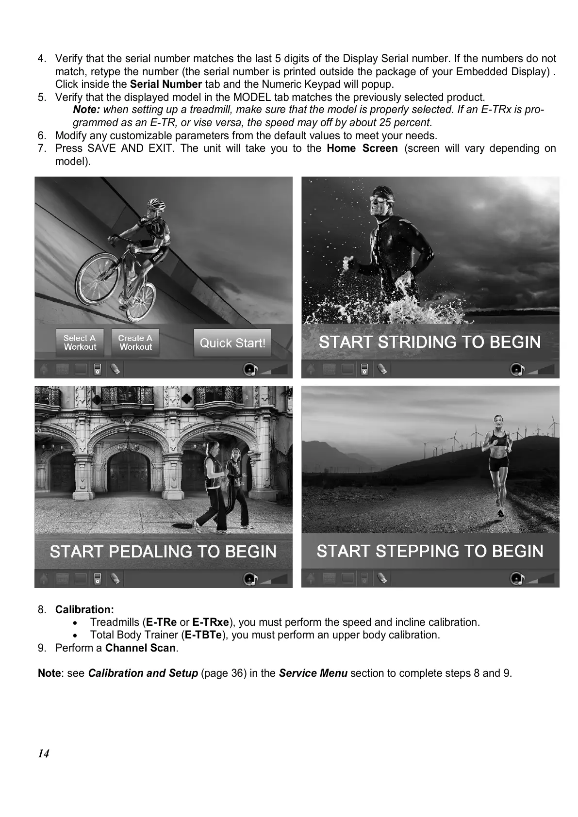 Treadmills (E-TRe or E-TRxe), you must perform the speed and incline calibration.