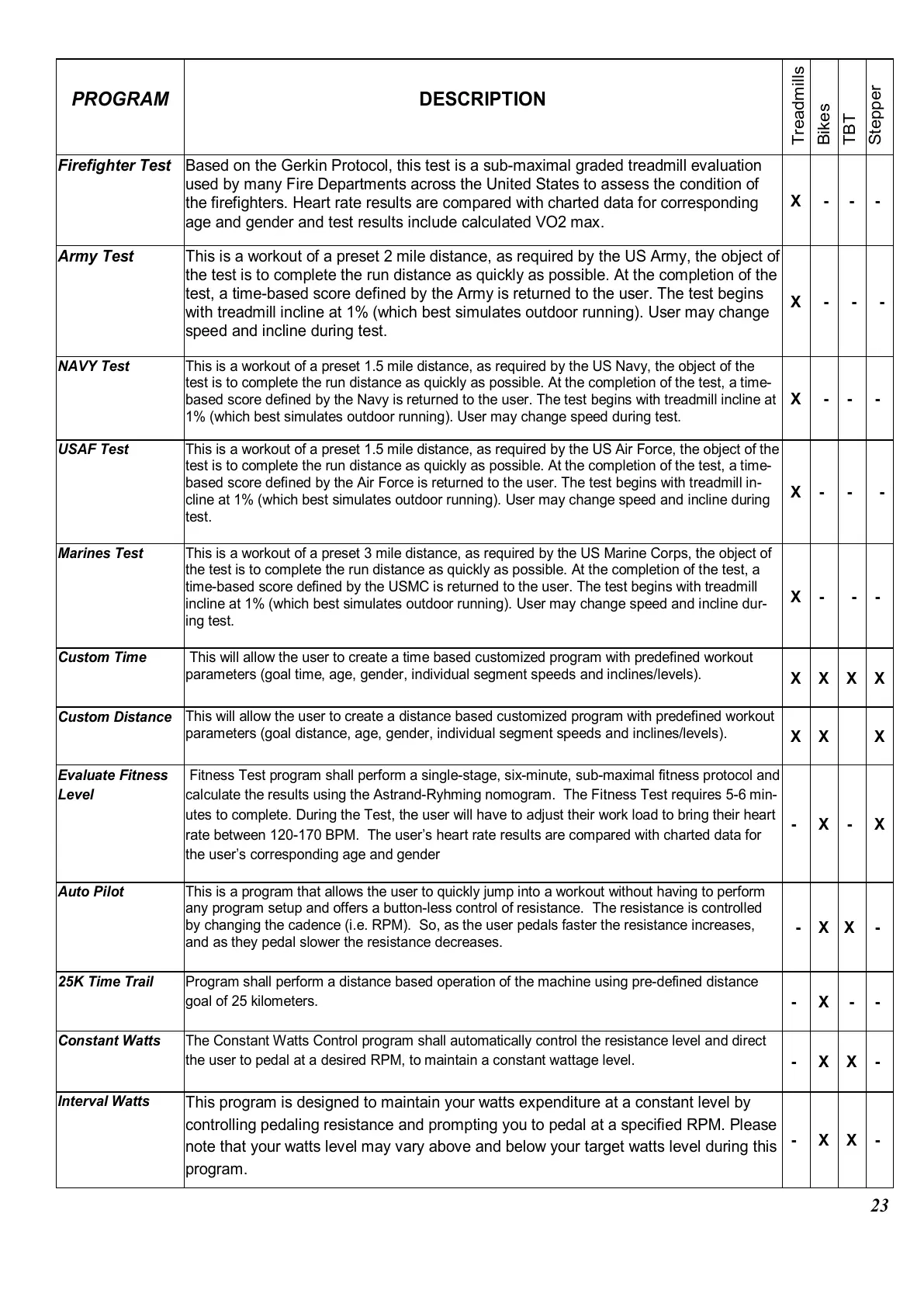25K Time Trail Program shall perform a distance based operation of the machine using pre-defined distance
