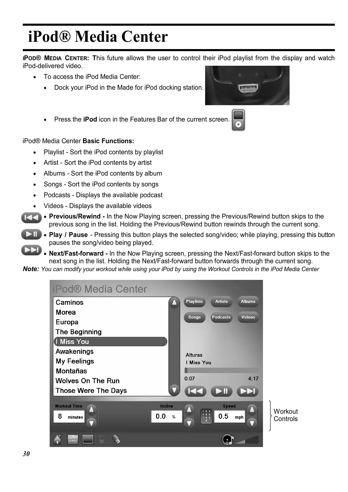 You can modify your workout while using your iPod by using the Workout Controls in the iPod Media Center