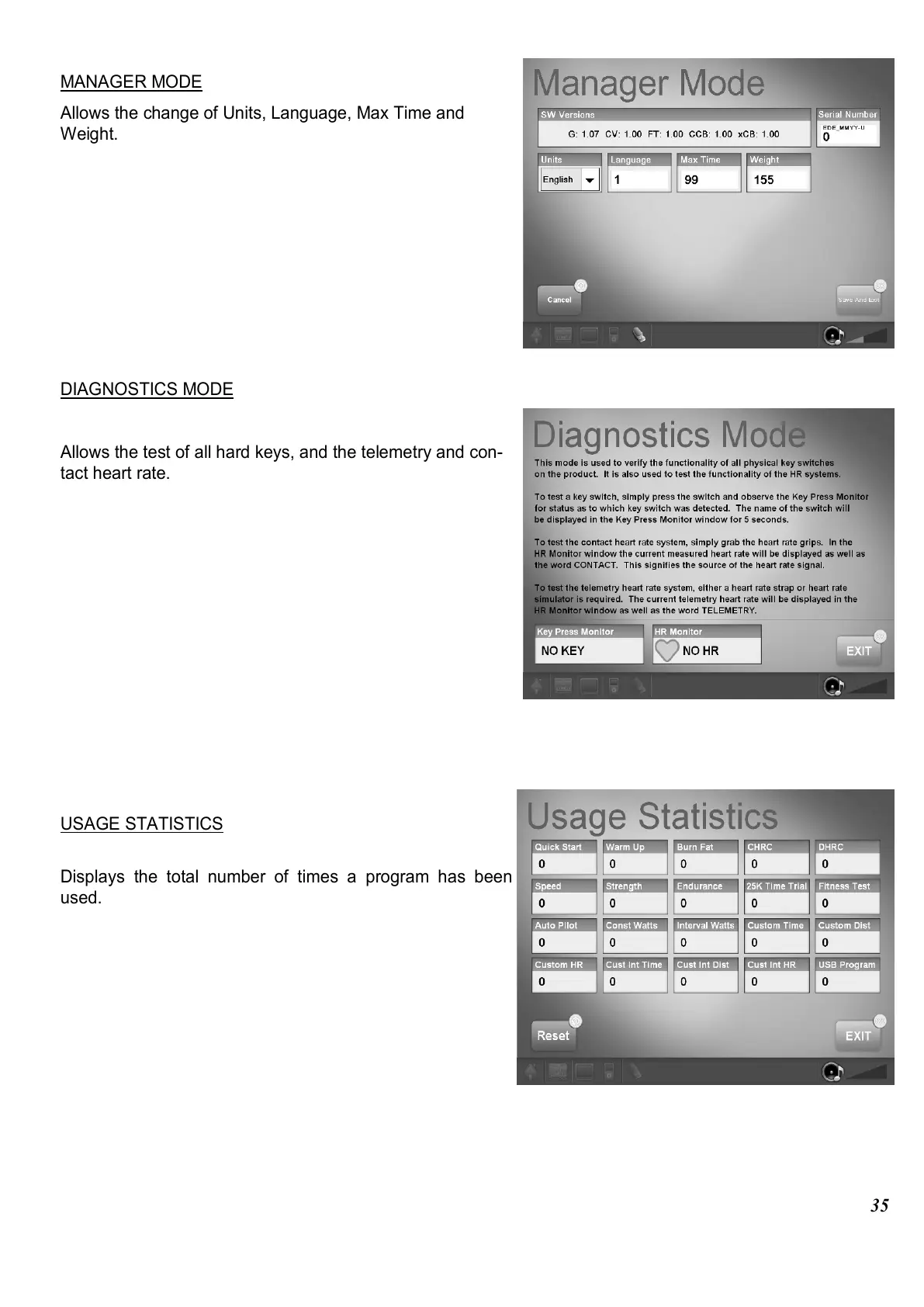 Star Trac E-TRxe - Manager Mode; Diagnostics Mode