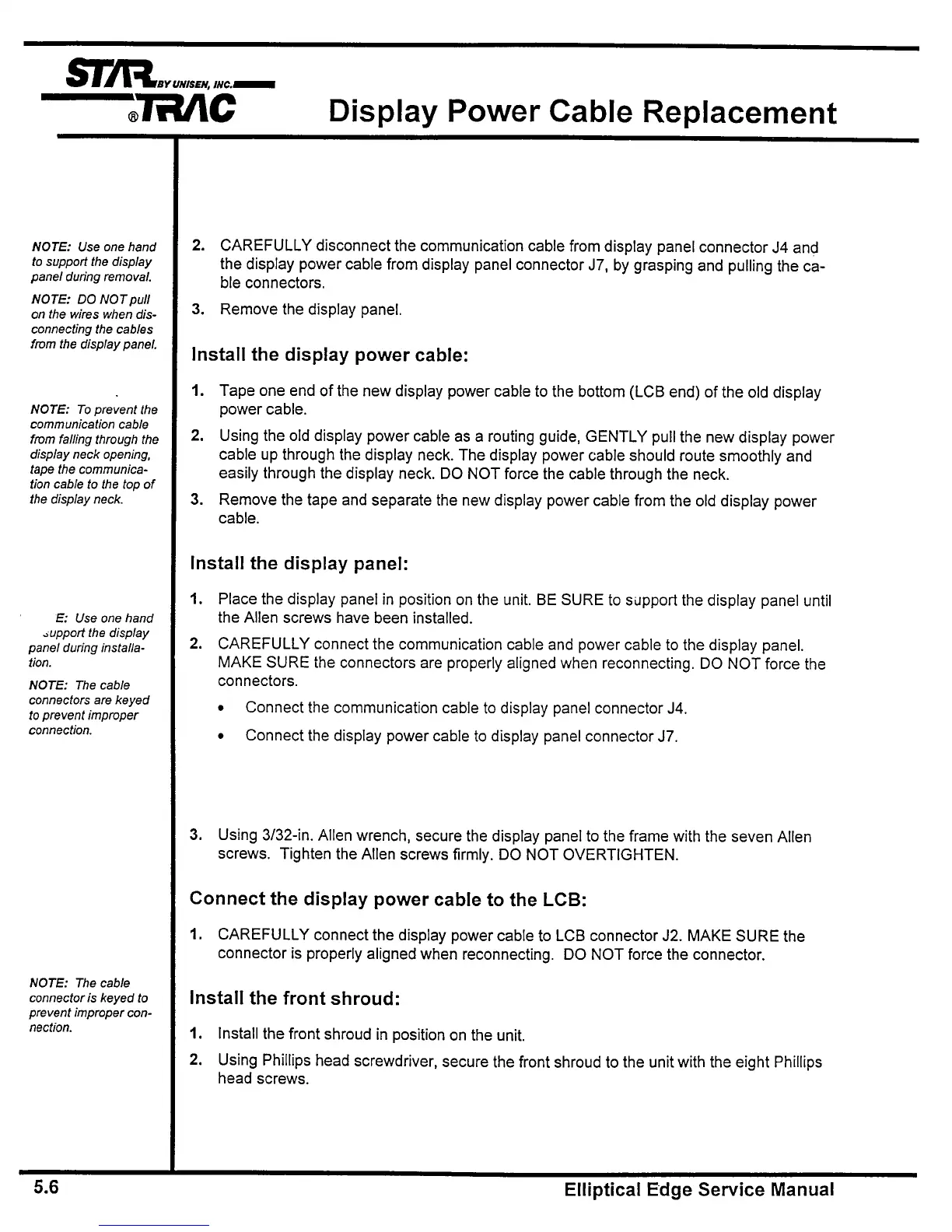 Star Trac Elliptical Edge - Display Settings; Display Setting Parameters