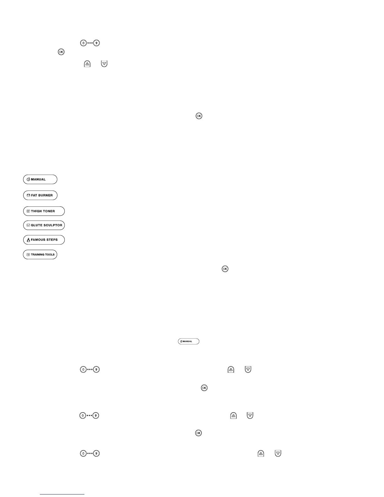 Allows the user to pre-program a time goal and user weight. Difficulty is determined by the user during the pro-