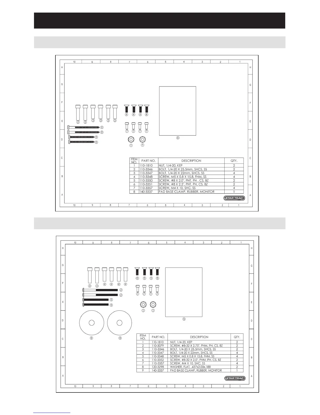 Star Trac Pro - Hardware Kits; Kit No.728-0005 (Hardware Kit for Bikes, Stepper and CrossTrainer); Kit No.728-0006 (Hardware Kit for Pro Treadmills)