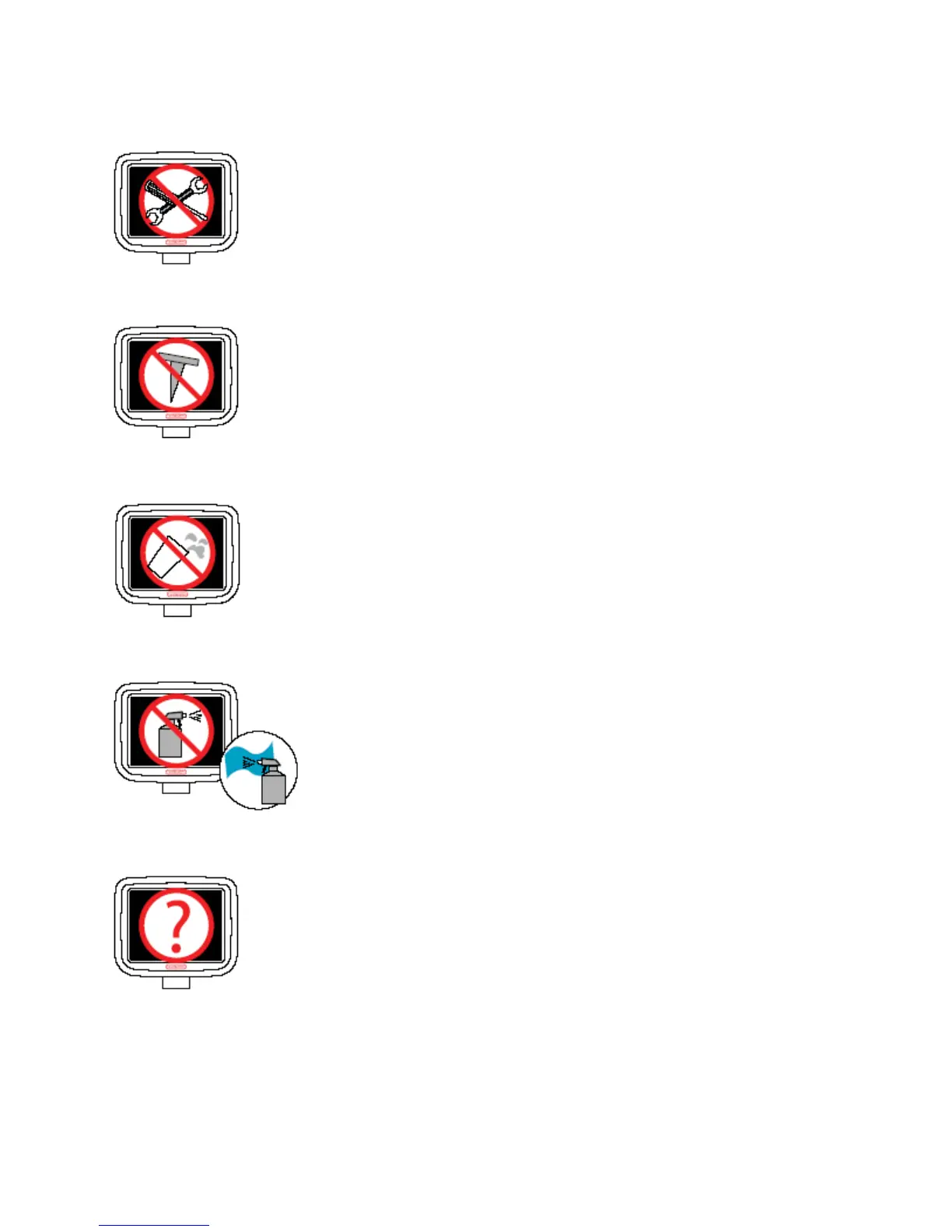 DO NOT place sharp tools such as pin or metallic object near the display.